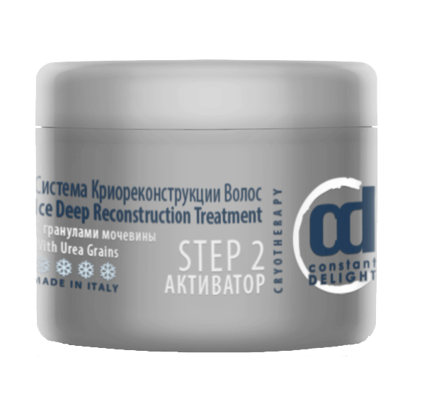 Способ применения: вымыть волосы шампунем. С помощью термометра проверить температуру маски, она должна быть не ниже 15 градусов. Добавить в маску Step 1 активатор Step 2 (20 г маски Step 1 + 6 г активатора Step 2). Перемешать шпателем до полного растворения активатора. Во время перемешивания температура начнет падать. Сразу же нанести полученную холодную смесь на влажные волосы, оставить на 3-5 минут, смыть теплой водой.