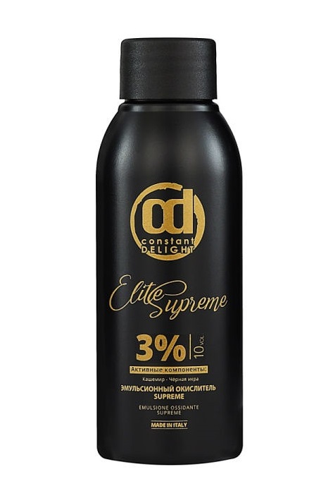 Применение: смешать в неметаллической емкости эмульсионный окислитель Elite Supreme с красителем или обесцвечивающим порошком Constant Delight в пропорции 1:1 - 1:2 (следовать инструкции применения красителя/обесцвечивающего порошка).